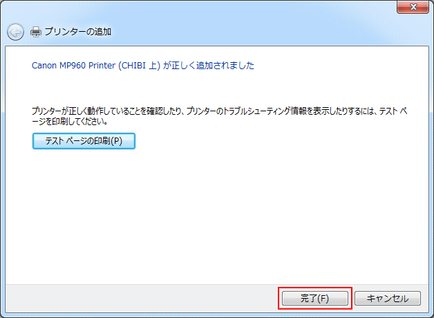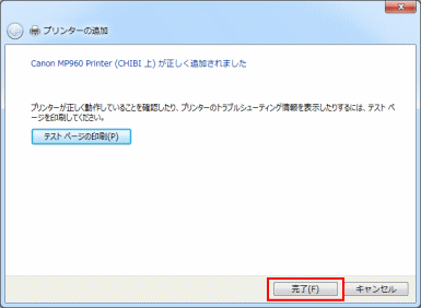 | 8.「完了」をクリックします。 |