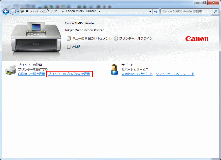 | 4.「プリンタのプロパティを表示」をクリックします。 |