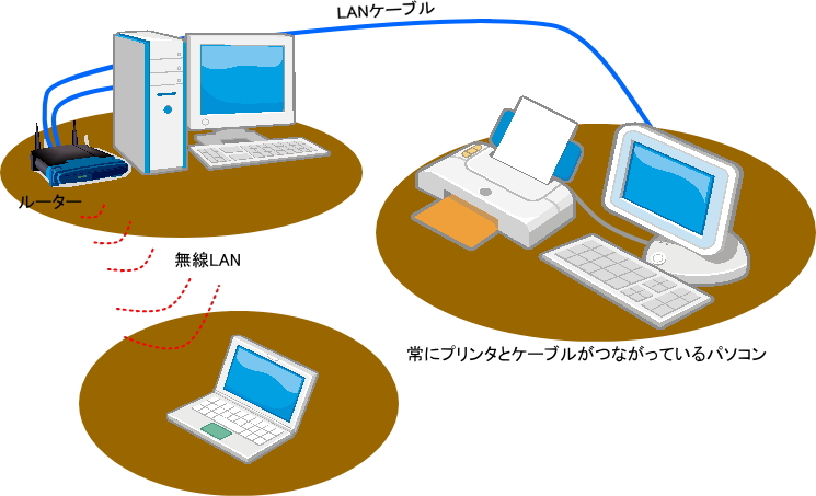 家には、パソコンが何代もあり、プリンタが1台というのもあります。