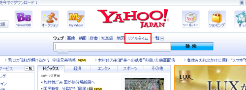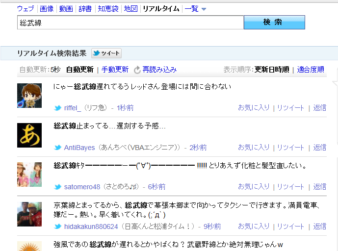 このサービスにのっかったようなサービスがYahooの「リアルタイム検索」。