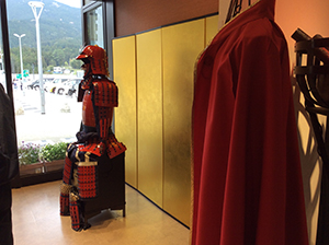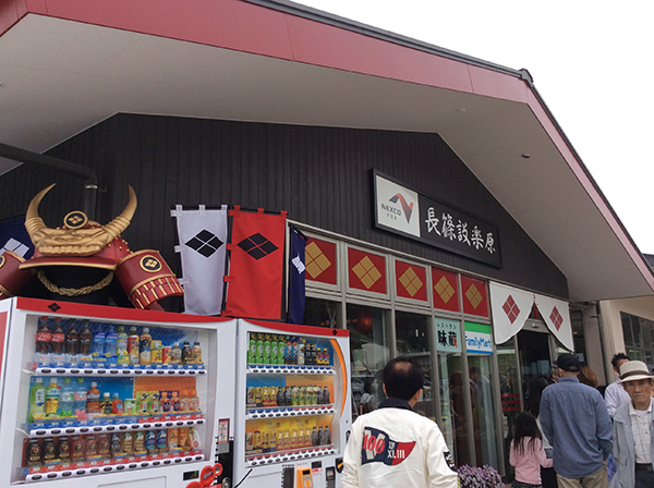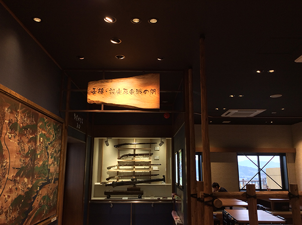 「長篠・設楽原の戦い」をコンセプトに、本陣に見立てた建物外観に加え、歴史的観光資源を活かした火縄銃の展示や馬防柵を再現した戦国エリアです。