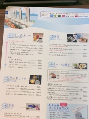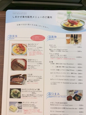 そして、車内販売のメニュー!社内食堂もあるので、そちらでも頂けます。