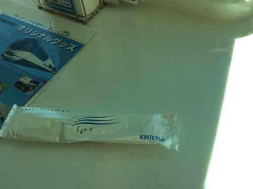 なぜか車両の間のところにおしぼりが。ご自由にでした!