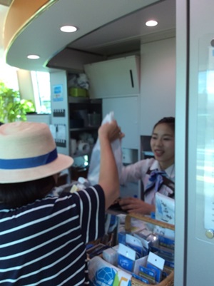 そして、座席に帰ってきたら、キャビンアテンダントさんが待っていて、「こちらはお持ちですか?」と。