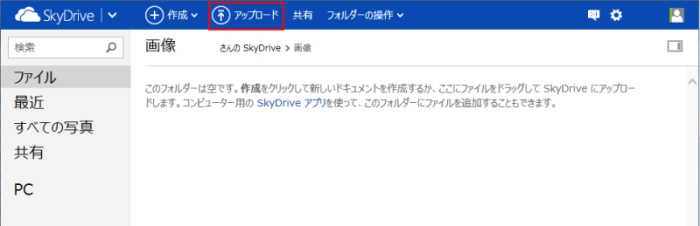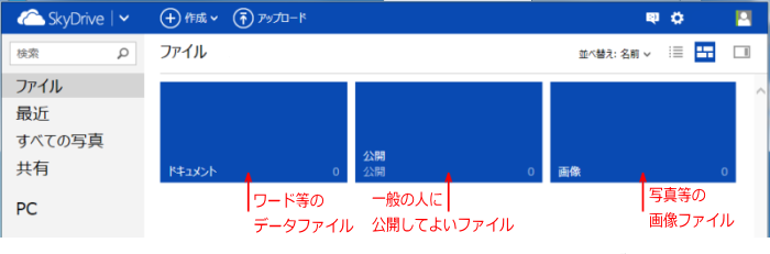 アップロードするには、SkyDriveのフォルダ構成を知っておいた方がいいです。