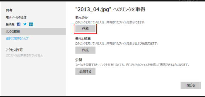 4.下のような画面が表示されるので、「表示のみ」の「作成」をクリックします。