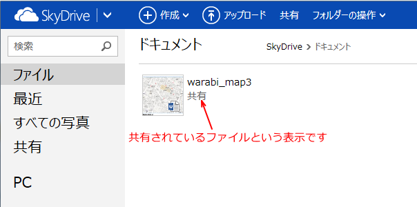 ※ちなみに、ファイルを共有する場合は、4.の操作の時に「共有」をクリックします。