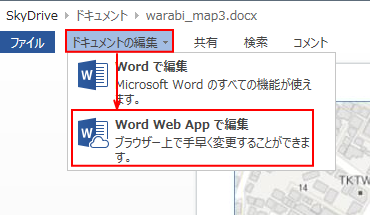 5.Web上で簡単に編集をしたいので、「Word Web Appで編集」をクリックします。