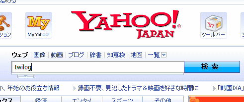 1.Internet Explorer を起動し、Yahoo Japanで「twilog」のキーワードで検索をします。