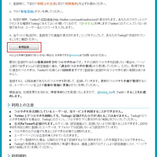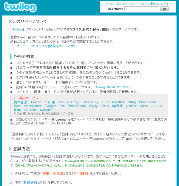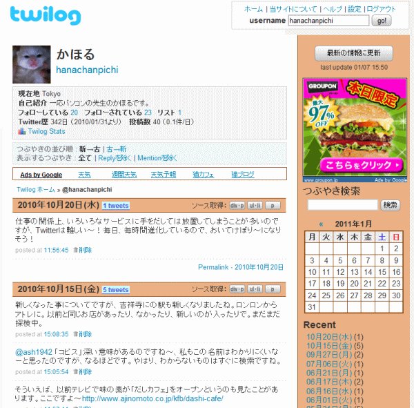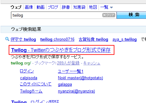 「Twilog-Twitterのつぶやきをブログ形式で保存」をクリックします。
