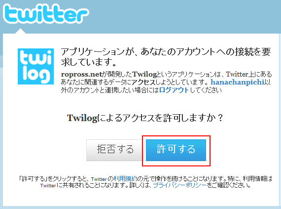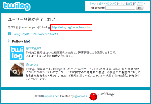 「あなた(@*******)のTwilog」と書いてある右側のアドレスをクリックします。
