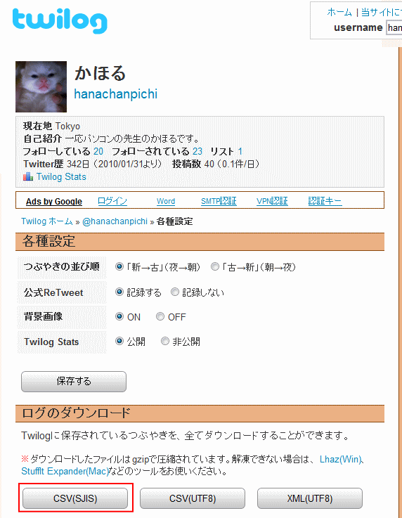 これは、Twitterでつぶやいた内容をブログのような形式に変換し、尚且つCSV形式に変換しダウンロードできるような仕組みを持っています。