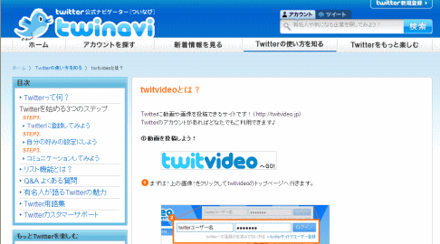 などなど・・・・・まだまだ沢山あります。勉強会では、TweetPhotoを紹介しましたので、ここでは、3q5f さんに教えて頂いた「twitvideo」の使い方を紹介したいと思います。
