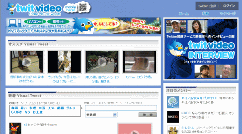 これで、まずは携帯サイトのtwitvideoが表示されます。