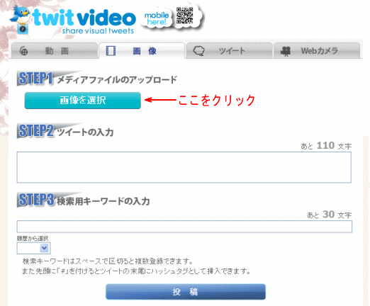 今回は、携帯でtwitvideoのページを表示してから進む方法で説明をします。