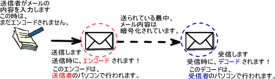 メールについては、送信時に必ず、メールソフトがメールの内容をエンコードしています。