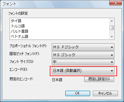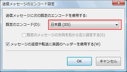 5.「規定のエンコード」が「日本語(JIS)」になっている事を確認します。