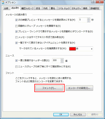 4.「送信」の設定内容の中の「エンコードの設定」ボタンをクリックします。
