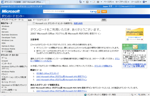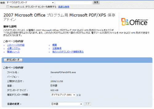 2007 Microsoft Office プログラム用 Microsoft PDF/XPS 保存アドイン