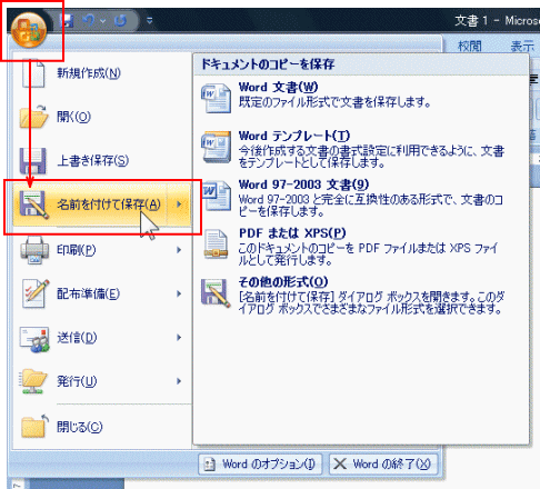 9.Officeボタンをクリックし、「名前をつけて保存」をクリックする。