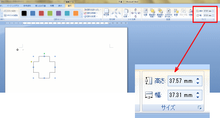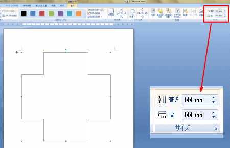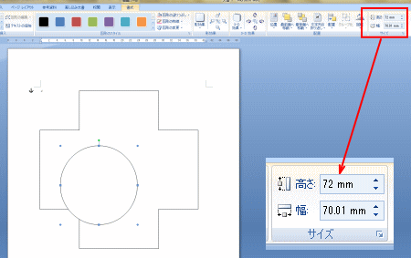 7.「描画ツール」の「サイズ」グループで「高さ」と「幅」を指定します。