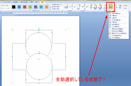 (次の操作の為に、全部の図形の選択を解除するために、図形以外の部分をクリックします。)