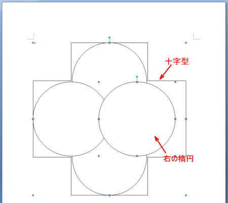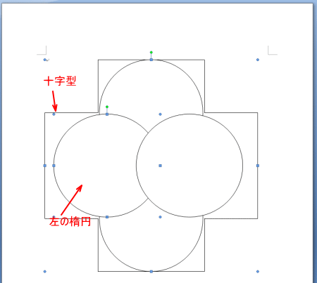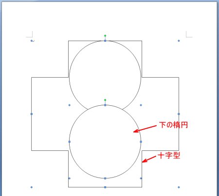 21.「十字型」と18、19で作った「円/楕円」の3つの図形をShiftキーを使って選択します。