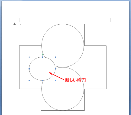 16.また新しく図形の中から「円/楕円」を選択し、やはり適当なサイズに描きます。
