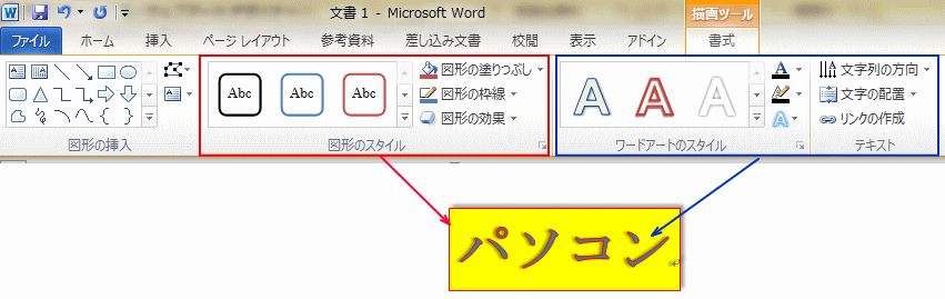 しかし、Word2010からは、ExcelやPowerPointと同じようにワードアートが変わりました。