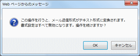 ただし、「色とグラフィック形式」から「テキスト形式」に切り替えをしようとすると、必ず、下のようなメッセージが表示されます。(↓)