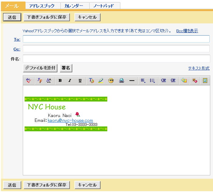 今どきなので、HTML形式でもいいのですが、それはYahooメールではない時。