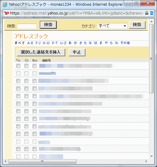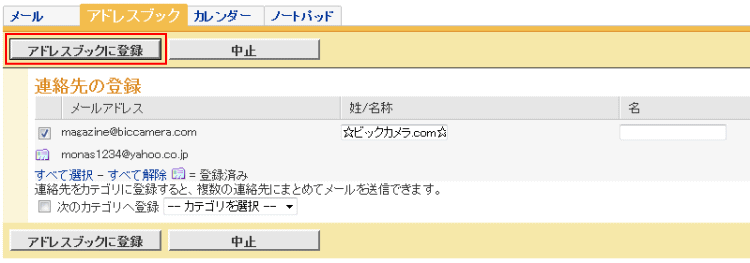 Yahooメールにログインし、「アドレスブック」のタブをクリックします。