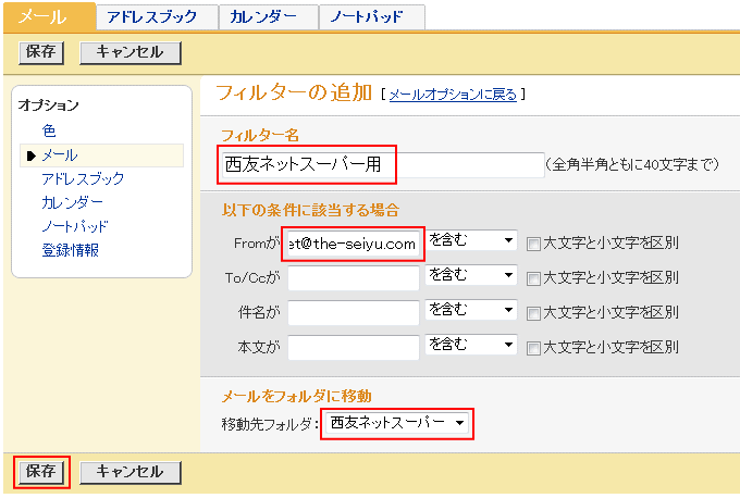 下のような画面が表示されるので、必要な部分を入力し、「保存」ボタンをクリックします。