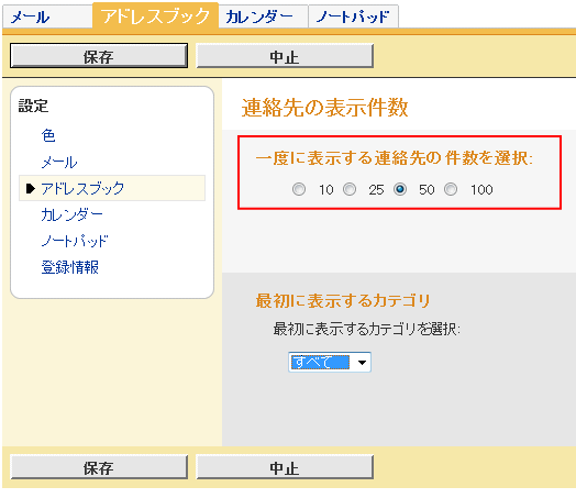 次に、アドレスブックの表示については、件数を増やすことが出来ます。