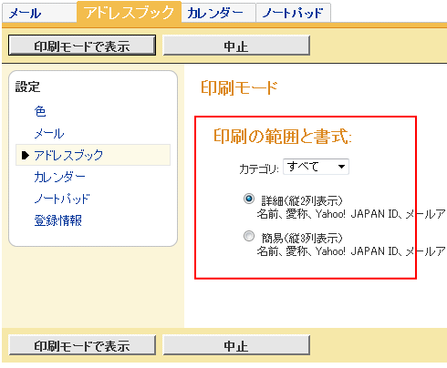 先ほどのアドレスブックの詳細設定では、「印刷用のアドレスブック」を設定してアドレスの一覧を印刷することが出来ます。