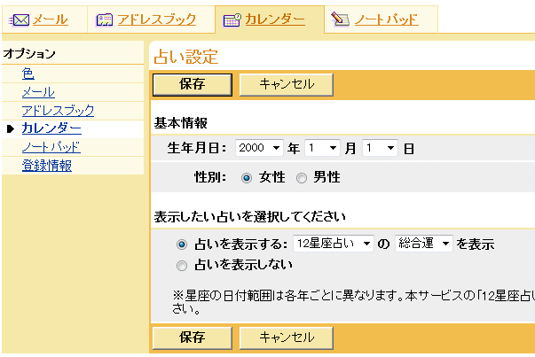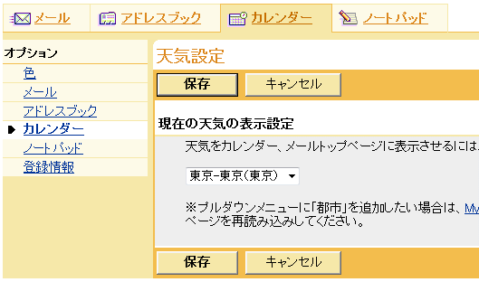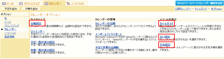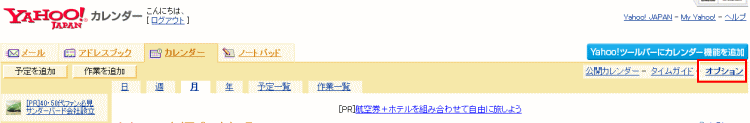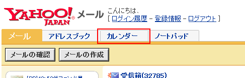 Yahooメールにログインし、「カレンダー」タブをクリックします。