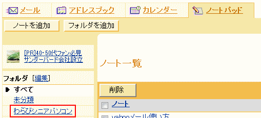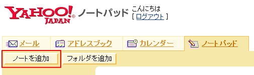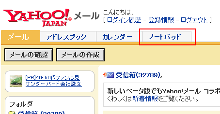 Yahooメールにログインし、「ノートパット」タブをクリックします。